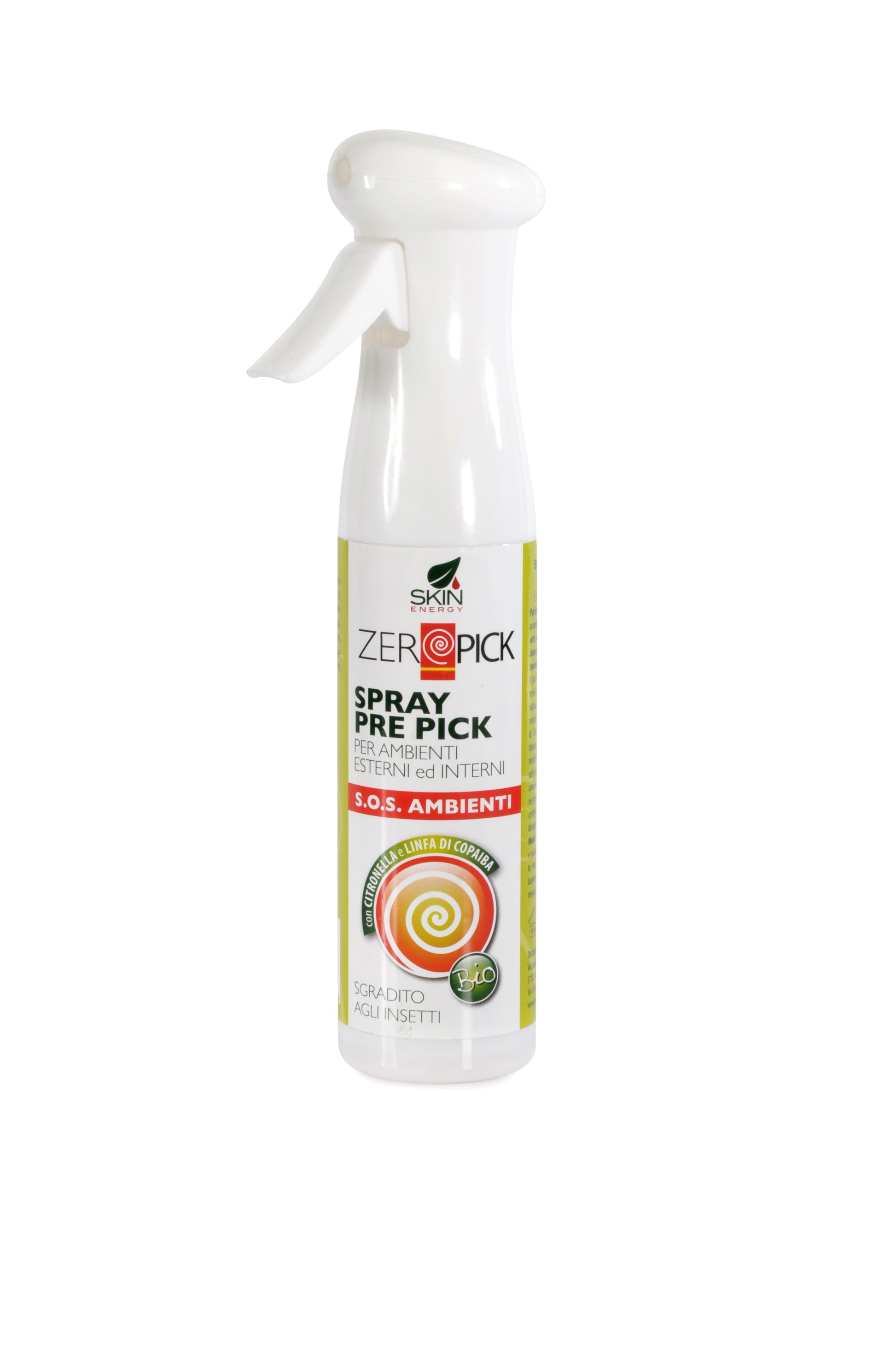 Lo spray Pre Pick ambiente purifica, profuma e allontana naturalmente gli insetti, ed è perfetto per essere nebulizzato in ambienti esterni o interni come casa, ufficio e automobile. La fragranza naturale e delicata risulta sgradita agli insetti ma completamente innocua per adulti, bambini e animali domestici. La formulazione contiene Linfa di Copaiba e olio essenziale di Citronella biologica, ed è certificata dal disciplinare Detergenza Pulita AIAB. Il suo speciale erogatore nebulizza a getto continuo, rendendo più rapida e ottimale l’applicazione del prodotto nell’area circostante. È disponibile in un pratico formato ricarica, da inserire esclusivamente all’interno del profumatore per ambienti della linea ZEROPICK.